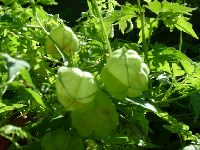 私が一番長く居座っているキッチンの西日を遮ってくれた「風船かずら」の実は、まだ緑色をしたものもありますが、