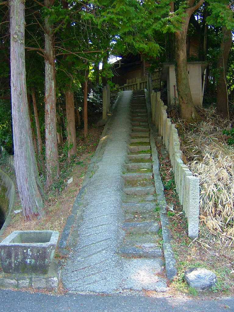 通津駅近くにある神社(ほこ(矛・鉾)八幡宮です。創建1100年以上と言われ、氏神様として親しまれています。表石段と本殿と裏石段です。写真ではうっそうとした森のように見えますが、小さな一角です。