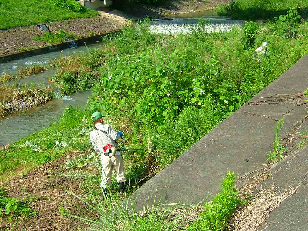 その暑さの中、NPOの定例通津川草刈りを実施。増水していた川は、思ったよりも早く落ち着きを取り戻したため、安全そうな箇所を選んで予定通り作業ができました。これからの作業で要注意なのは「高齢者の脱水症」です。私はパシリに徹して飲み物を運搬しています。
