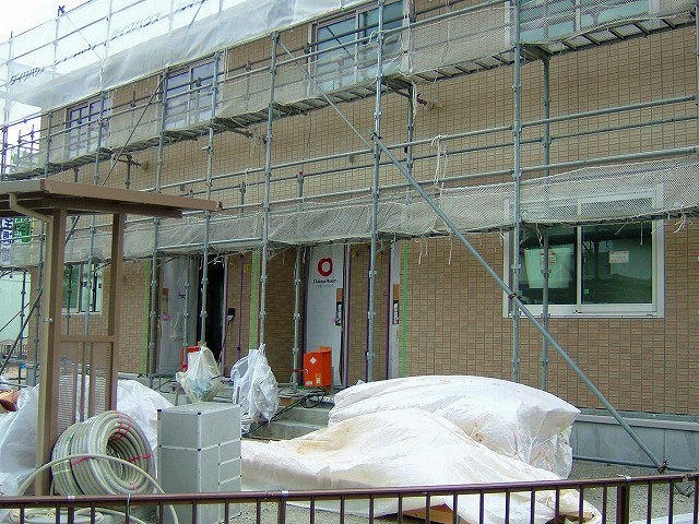 毎朝7時半から夕方5時まで何人もの人が忙しそうに作業していますが、見た目ではどこがどう変わったのか解りません。建物の外観が出来るときが一番ダイナミックで面白かったはずなのに、外出していた数時間に終了していました。でっかい積み木みたいだったのかなー。