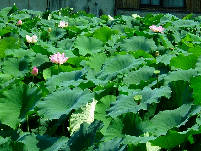 スーパーマーケットに行く途中のハス田にはピンクの花が沢山咲いています。