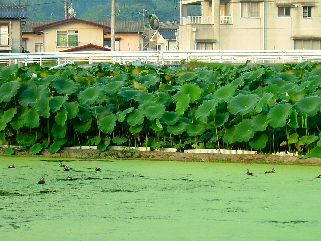 春に生まれたカモの子ども達がすっかり大きくなり、両親と9羽で遊びに来ています。見ていると子ども達が自由に泳ぎまわっているのを両親は少し離れて見守っています。もっと小さな時は大勢の子ども達をピッタリガードしていたのですが。
