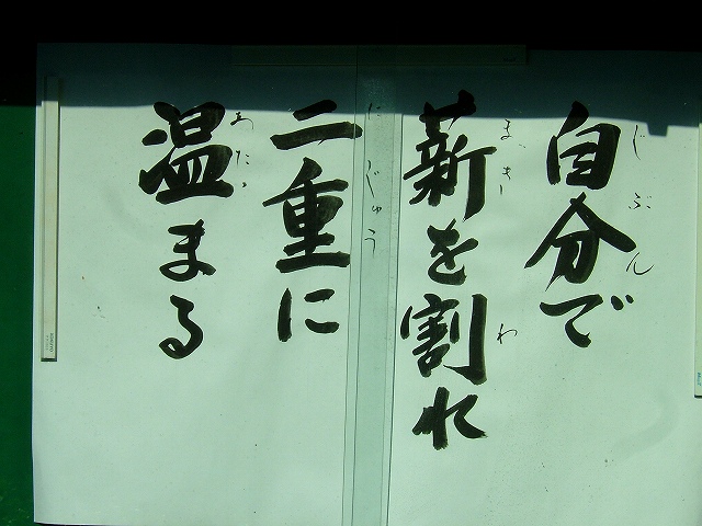 お寺の掲示板です。薪を割る作業は確かに体が温まります。その薪で沸かしたお風呂は温かいし、沸かしたお湯で入れたお茶は心も体も温めてくれます。薪ストーブは憧れです。