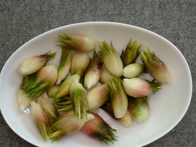 暑い日には毎日でも食べたいおソーメンに欠かせない茗荷が全く実りませんでした。葉っぱばかりボウボウなので「切りますよ」と小言を言いながら切っていると、あらら~遅ればせながらこんなになっていました。