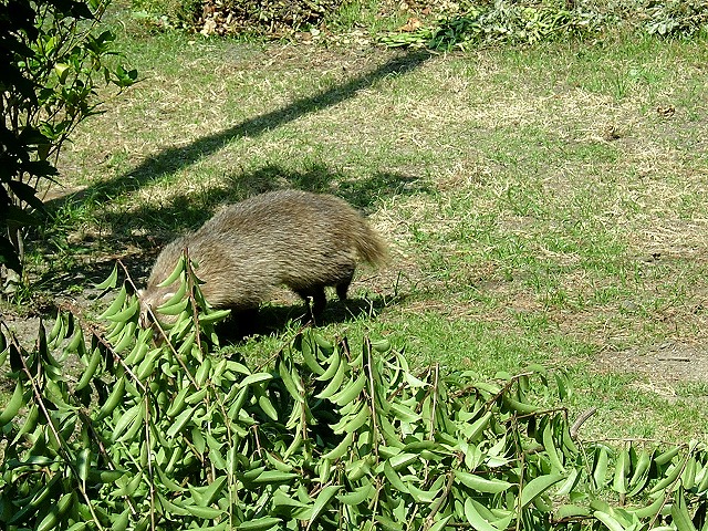 「タヌキだ」と言う連れ合いに、息子は「タヌキの顔じゃない」と足の先まで観察して調べた結果「アナグマ」と判明しました。彼(彼女?)の目の前にしゃがみこんで時々見つめ合ったりしている1匹と1人はちょっと奇妙な風景です。