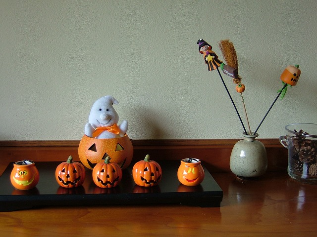 今月はHaloweenの月なので、玄関もそれらしくしてみました。