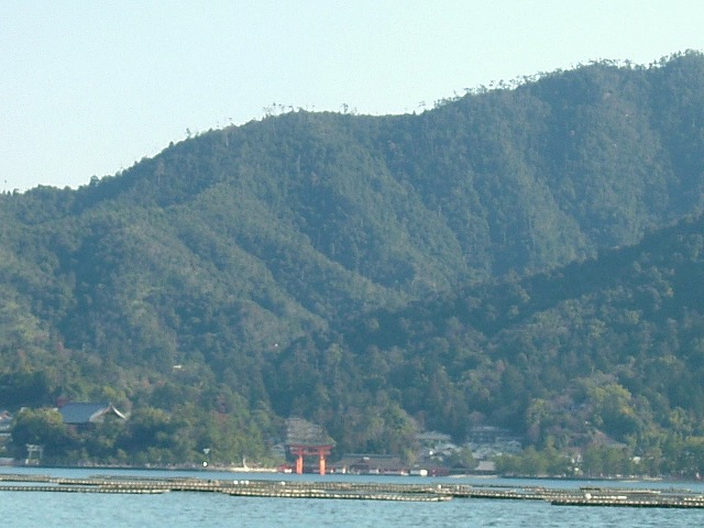 五日市までは海沿いを走るので結構気持ち良いドライブなのにね。宮島を正面に見るファミレスで遅い昼食を摂り、写真を撮りました。対岸の大鳥居と沢山の牡蠣いかだです。
