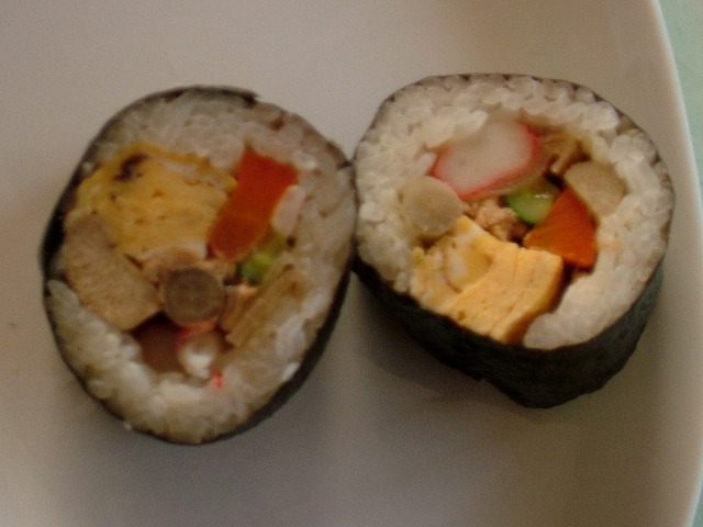 今年の恵方は「南南東」だったようです。お寿司つくり上手な友人がちゃんと届けてくれました。恥ずかしながらこの私、この年にして一度も「のり巻き」を巻いたことがありません。絶対に上手く巻けないと確信しています。君子危うきに近寄らず?あれっ?違った?