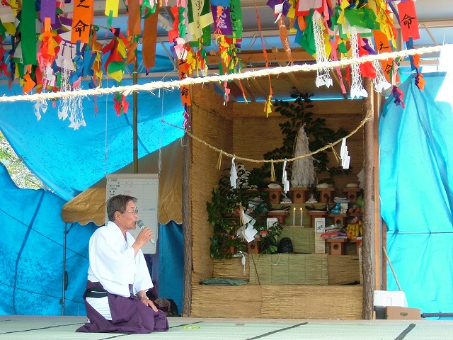 地元に住む岩国市長も風避けのブルーシートの前でごあいさつ。