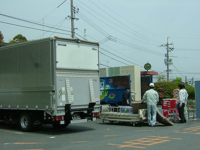 業者が使われなくなったロッカーなどを運び出していました。子どもの頃、緩い傾斜地に木造の病舎が点在していた「国病」は格好の遊び場でした。私が岩国を離れた後に建て替えられはしましたが、「国病」はいつも「そこにある」ものでした。