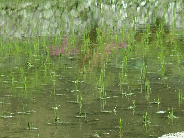 早い田圃では田植えが済みました。田圃を渡る風が涼し気です。