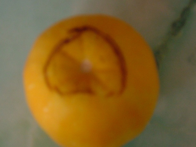 枝つきの周りがこんな風にヒビ割れたら「絶対に完熟」だそうです。もぎ取ってきましたが、お味はまだ。食べるばかりの状態で冷蔵庫の中です。