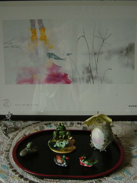 急な梅雨明けと日々の雑多な用事で、玄関にはまだ「カエルたち」が居座ったままでした。ので、