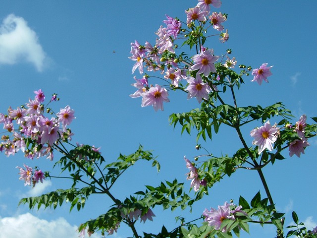 数年前には珍しかった「皇帝ダリア」ですが、今ではあちらこちらで見られるようになりました。茎は竹にそっくりです。