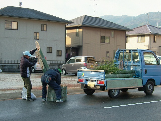 が、曜日にとらわれない我がNPOは朝から門松の設置にかかりました。