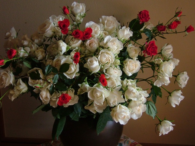 2月のある日、友人の誘いで柳井のバラ園に行きました。何棟ものビニールハウスが立ち並んでおり、その中に小さなプレハブがありそこが売店です。摘みたてのバラは徐々に数を減らしながらも、1ヶ月以上経った今も残っています。可愛いきれいなバラを手に入れる事ができて満足なのですが、もう一度行きたくはありません。と言うのも売店にいたたった一人の娘さんが、これまで会った花屋さんの中で最悪だったから。笑うと税金を取られるとでも思っているのか・・。友人4人であれこれとバラを選んで支払いをして帰るまで一度も笑顔を見ませんでした。珍しいと言えば珍しい。可愛い顔をした珍獣ってとこかな?