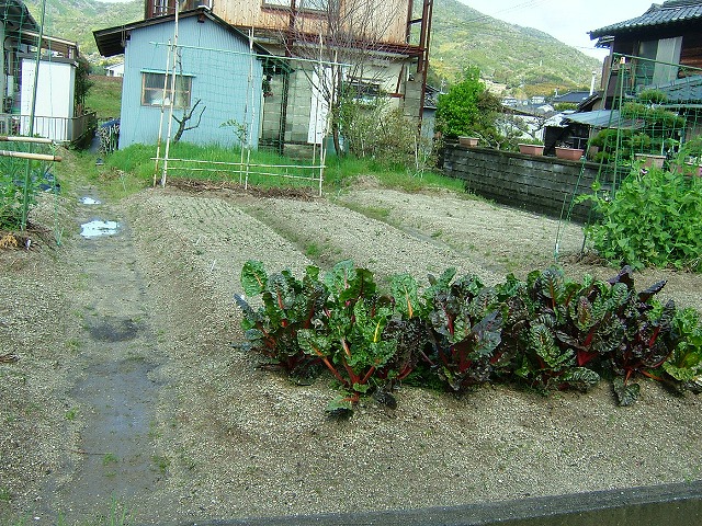 大抵のお宅の畑は春を迎えてきれいに耕されています(左側)。私の畑は青々とした雑草の楽園のままです(右側)。