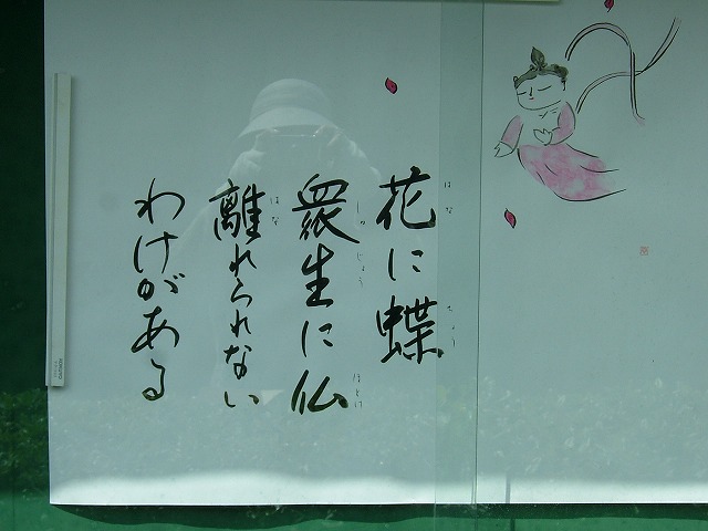 お寺の掲示板です。「花に蝶 衆生に仏 離れられない わけがある」