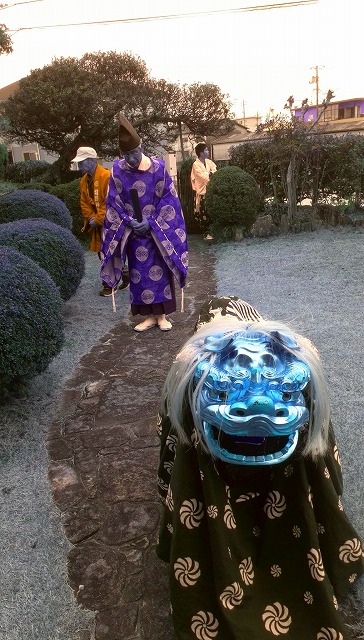 高校生が中に入って舞ってくれるお獅子の頭は「黄金色」でしたが、スマホの設定がおかしくてみ~んな青ざめました。ボケないようにとガブリと噛んで貰った私もそれを見ている連れ合いも丸で「ゾンビ」。
