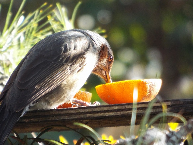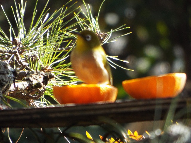 連れ合いはメジロフェチだと思っています。きっと子どもの頃に(今は禁止されている)鳥モチなどを持って山を駆け回っていた頃が懐かしいのでしょう。この季節メジロの気配がするとソワソワと落ち着きません。早速ミカンで引き寄せ写真に収めました。