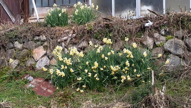 我が家の先先隣りは空き家で、今ではほとんど廃屋状態です。が、沢山の水仙が毎年咲き私を楽しませてくれます。