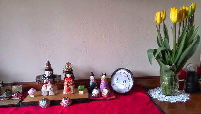 おひな様を出しました。1年に1回のことなので、少し風に当てる意味も込めて玄関に並んでもらいました。それぞれに思い出があり、古びても手放すことができません。