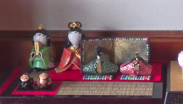 この2対のおひな様は20年くらい前に東京での友人が作ってくれたものです。彼女たちがこれを作っていた時の様子や、貰った時の嬉しかった気持ちなどアリアリと思い起こします。