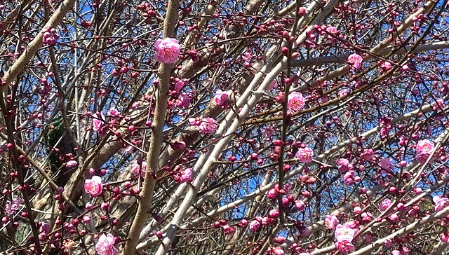 石仏巡りの道中での「紅梅」です。まだ蕾だったり咲き誇っていたり・・。多分種類があるのでしょうが。