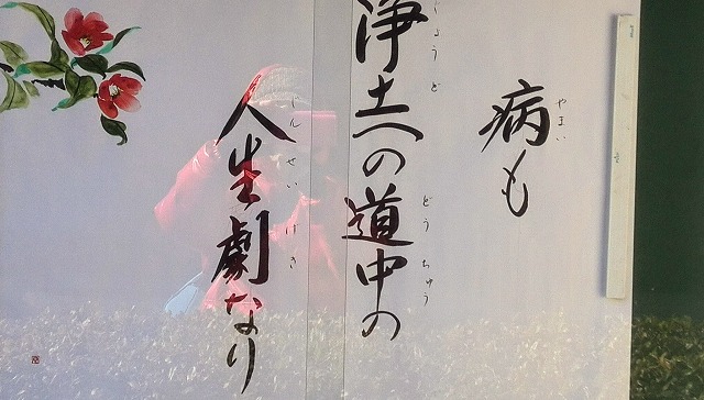 お寺の掲示板です。「病も 浄土の道中の 人生劇なり」