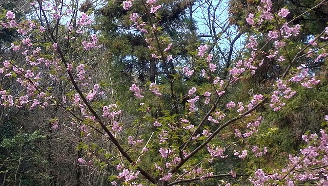 何年もかけて彼が手入れした持ち山は「河津桜」が満開でした。下界(?)よりも気温が低く、季節が少々ずれています。