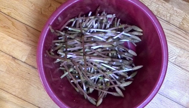 我が家から徒歩1分足らずの休耕畑でツクシ摘みをしてきました。あぜ道の近くは敬遠して少し奥まった場所が、ここ数年私が独り占めしているばしょです。ツクシは見渡す限りニョキニョキ。バケツにいっぱい収穫