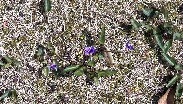 まだ茶色の芝生でいち早く咲き始めている「すみれ」は正直言って厄介者(物)です。抜いても抜いてもいっくらでも生えてきます。