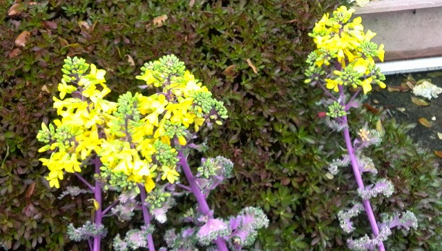 お正月のために植えた葉牡丹にやっと花が咲きました。