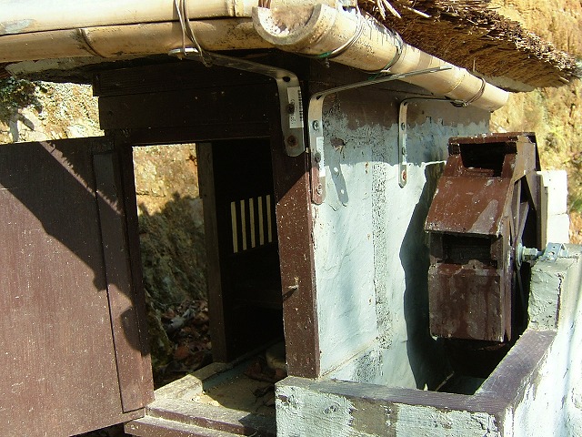 ミニチュアハウスの「水車小屋」です。水を流すとちゃんと回るそうです。中には粉を挽くための仕掛けもあります。これまで載せてきたこれらのハウスはどれも素晴らしいのですが、残念なことに戸外に置いてあるために徐々に風化してきています。造られた方はきっと「造る過程が楽しい」のでしょうね。