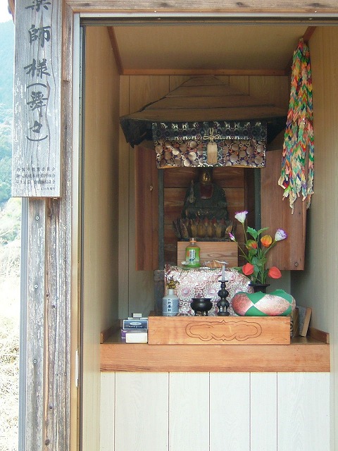 途中で中腹にある「出雲大社・通津講社」に立ち寄って宮司のお祓いを受け、更に歩いた先の地区の集会所で早めのお弁当を食べて腹ごしらえ。舞々地区には民家が何軒かありますが、現在人が居住しているのは4軒だけだそうです。その方たちが御大師様を守っています。「石仏めぐり」では毎年2月に行く(2月のある日が祭日に決まっている)のですが、良く雪に降られます。お祓いを受けたり、般若心経を唱えたりに全く抵抗なく(なさそうに見える)素直に祈る皆さんを見ていると、ゆる~い宗教観も良いもんだなーと思わずにいられません。
