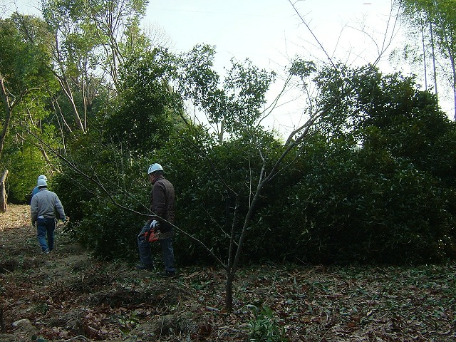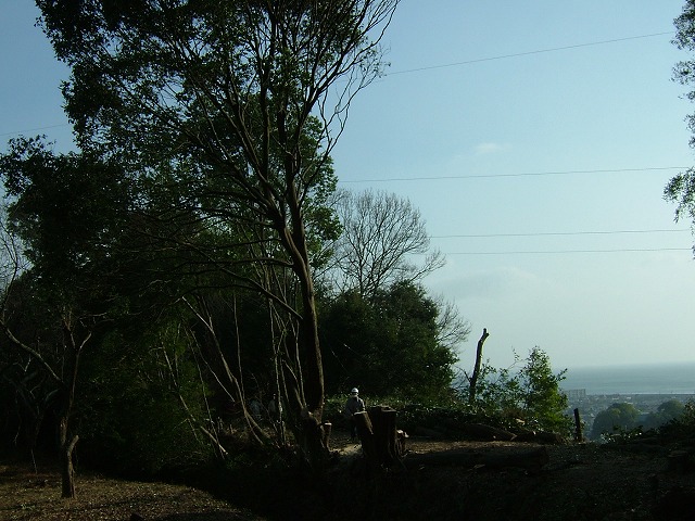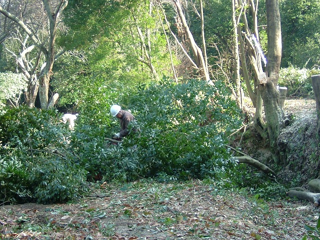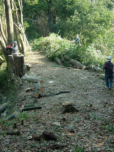 今日倒したのも樹齢60余年の大木で、常緑樹(樫だそうです)のために膨大な枝葉です。