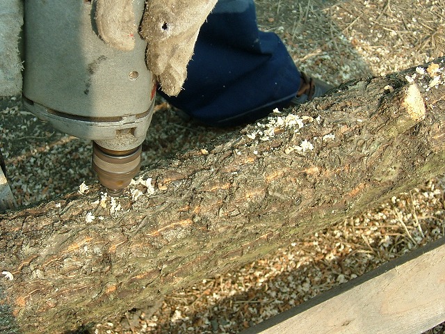 その木にドリルで適当な間隔で穴をあけます。