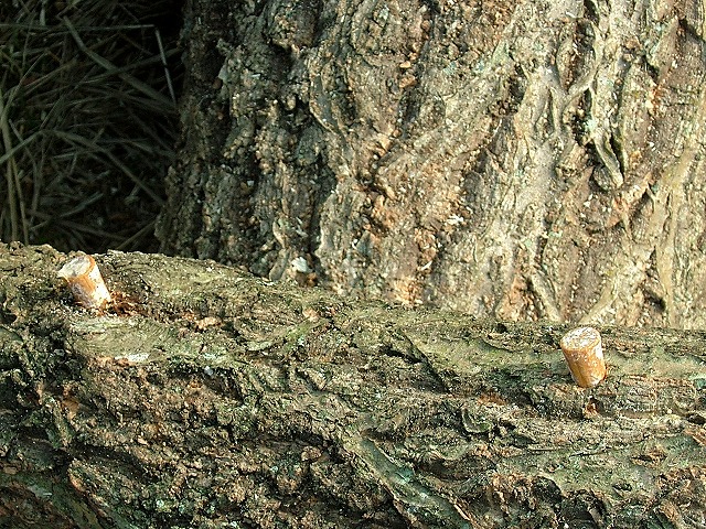 述べ6日間を要したNPOの大仕事が一段落したので、連れ合いは「シイタケの駒打ち」のお手伝いに行きました。見物が仕事(?)の私もちょっと覗いてトンカチで叩いてみました。