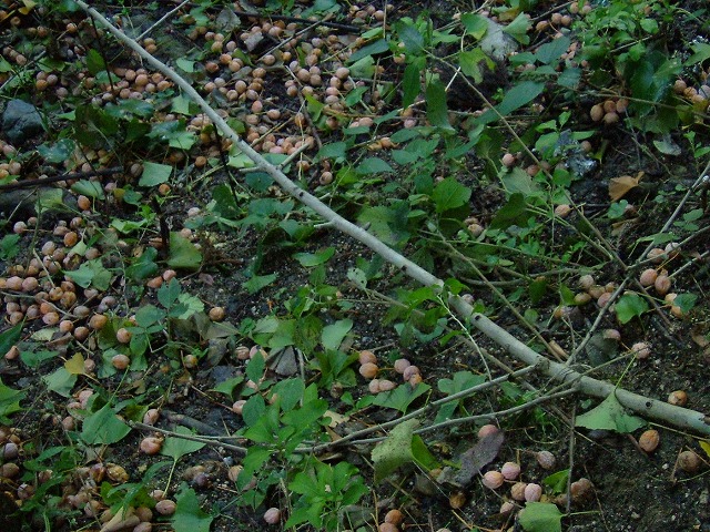 画面が暗いのは大きな銀杏の木の下なので。「ギンナンを拾わんか」との電話をもらって連れ合いと行ってきました。昨日の風で地面が黄色いくらい落ちています(写真右)。その中にしゃがみ込んで息を止めながら拾っている連れ合い(写真左)
