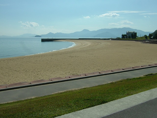 「誰もいない海」そのものです。由宇が岩国市になったばかりに通津海水浴場が「さびれた」と残念に思っていますが、こうしてみると「潮風公園なかなか良いじゃん」と認めます。