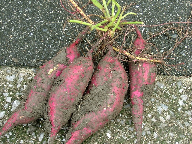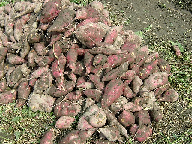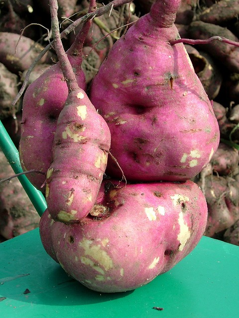 面白い形をしたお芋です。4個が全てくっついています。こんなに大量の収穫がありました。冬の間に行う「山遊び」での焼き芋が楽しみです。