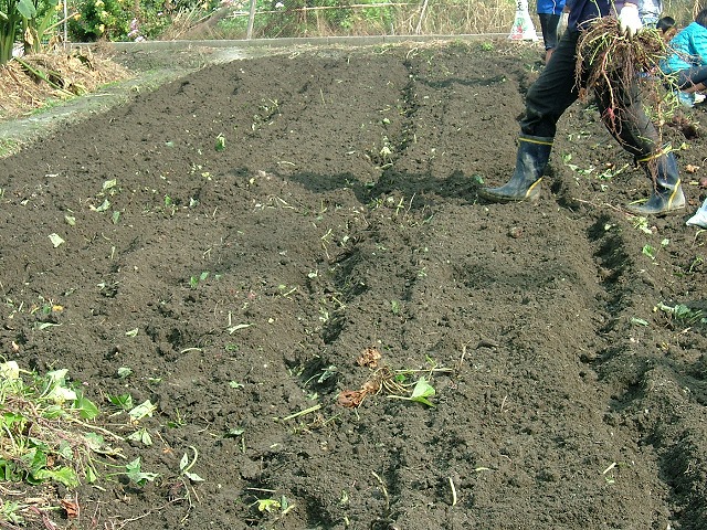 子どもたちが畑の中にいるのはせいぜい30分くらいです。直ぐに飽きて遊び始めてしまいますが、主催者は「子どもはそんなものだ」と理解していて、危険さえなければ自由にさせています。従って最後までお芋を掘り、来月「玉ねぎ」を植えるための畑づくりはサポーターの仕事です。