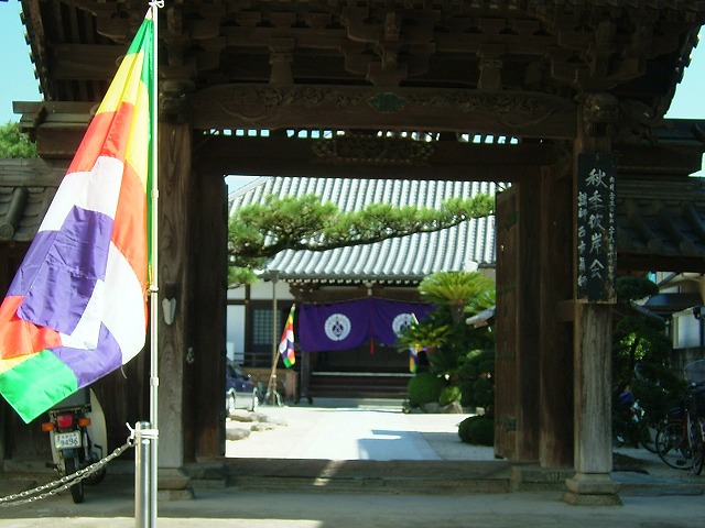 自転車でフラフラ通りかかると「秋季彼岸会」開催中のお寺に。門の前までお線香の香りが漂っていました。