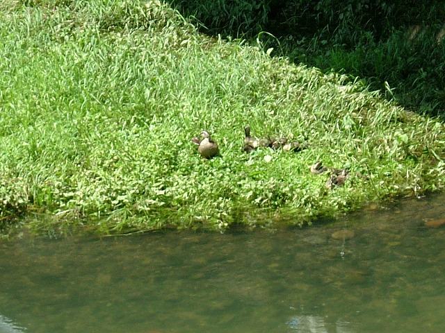 「きらい・きらい」と言いながら、又もや鳥の写真です。自転車で近くまで出たのですが、家から出たところにある国道の橋の下でカモの親子が日向ぼっこをしていました。5羽の子どもを連れた両親はべったりではなく、その癖とても注意深く子どもたちを観ています。