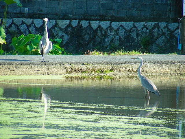 家の前の休田は水鳥たちの良い漁場で遊び場です。