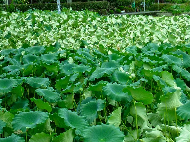 スーパーマーケットに行く途中のハス田にはピンクの花が沢山咲いています。