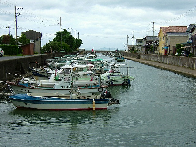 普段は港の中に係留されている船は、用心のために港奥の川に移されています。