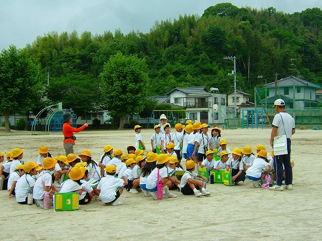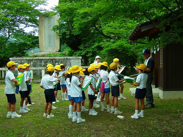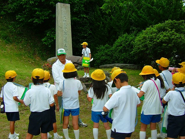 梅雨の晴れ間は今日までとの予報の中、例年行われている(小学)3年生の地域(史跡)探検のお手伝いをしてきました。NPOの仲間数人が引率や史跡説明を受け持ちます。まわる史跡は「岩国城初代藩主・吉川広家公終焉の地」「樹齢500年・イヌマキ巨木」「東沢瀉終焉の地」の3ヶ所です。時間にして約2時間、7000歩の行程でした。