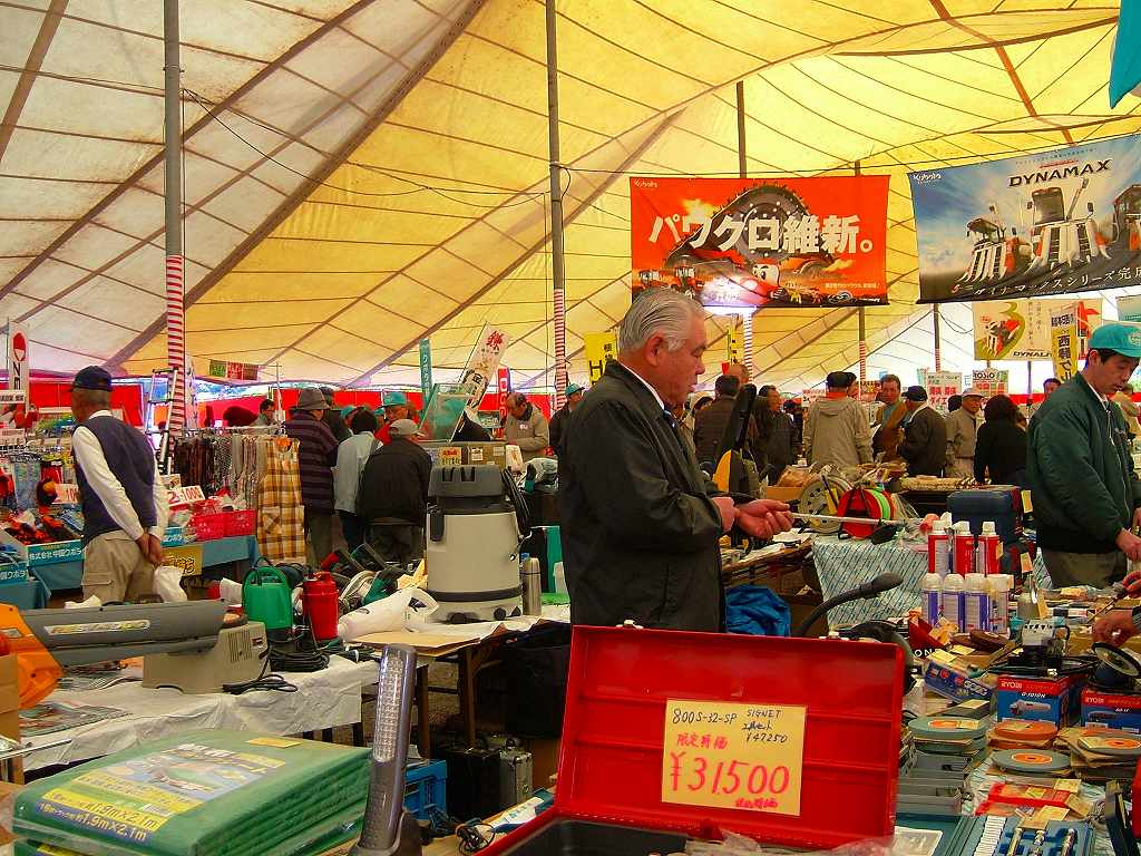 通津から車で30分くらい走った所に伊陸(いかち)と言うところがあり、そこでクボタの展示会が行われています。NPOで必要な消耗品があるかも・・と会員に誘われて行ってみました。連れ合いが使っている草刈機が「クボタ製」で、お古のためにしばしば不調に陥ります。「クボタ」の機械はこの辺りのDIYの店では扱っておらず、従って修理にも応じません。川西にある「クボタ」の岩国営業所まで何度も通っています。何となく親しみは感じていましたが、展示会には驚かされました。