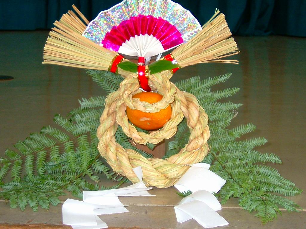 通津の長寿会は「小学生と注連縄を作る」催しを毎年行っています。今日は3年生・明日は4年生が対象です。指導してくれる長寿会のメンバーを囲んでグループを作り体育館のあちこちに陣取ります。連れ合いは会員ではありませんが、臨時の助っ人です。右の写真がモデルで、今日は稲藁をなって輪っかを作るのですが、器用と不器用が歴然としていて、なかなか興味深い風景でした。50人の3年生は出来・不出来は別にして一人2~3個を作り上げました。